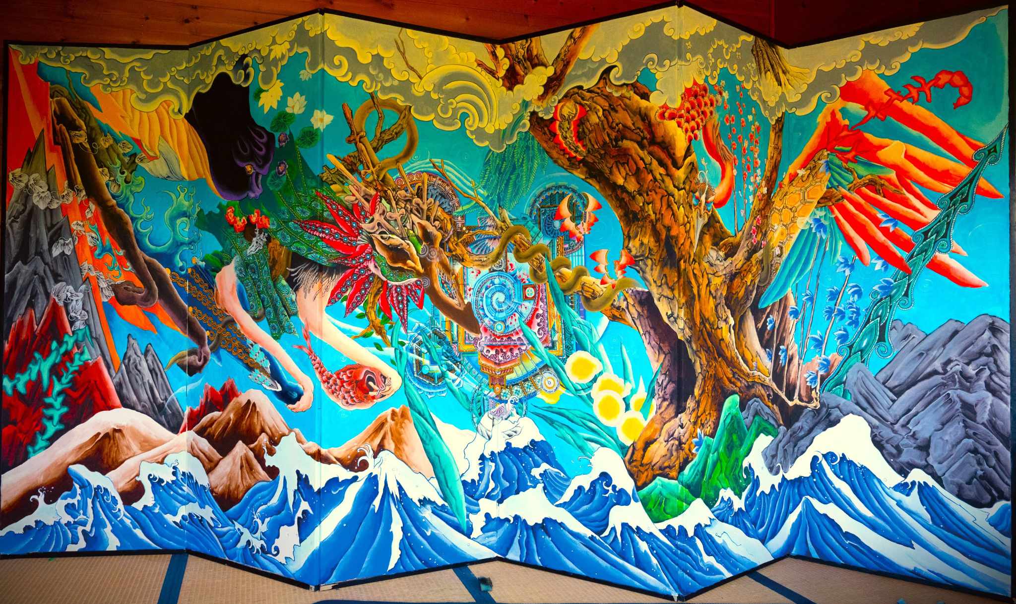 真摯に自然と向きあう時、人は感覚の原始へと還っていく、その時におのずと生まれる態度が美であり、その術として 美術があります。自然というのは、外に広がる世界だけではなく、自らの身体の中に連綿と受け継がれる生命としての自然も含まれます。縄文時代から受け継がれる生活の中にあたりまえに美のある在り方こそが、本当の豊かさであり、北アル プスの荘厳な自然に抱かれる木崎湖畔で滞在制作を行い、その地に暮らす人と出会うことでしか生まれえない表現を創造することによって地域の“文化”を生み出していきます。それは、外部と地元が出逢い、アートと伝統、都市と地方を結ぶ、文化の境界域としての祭を生みだすことです。